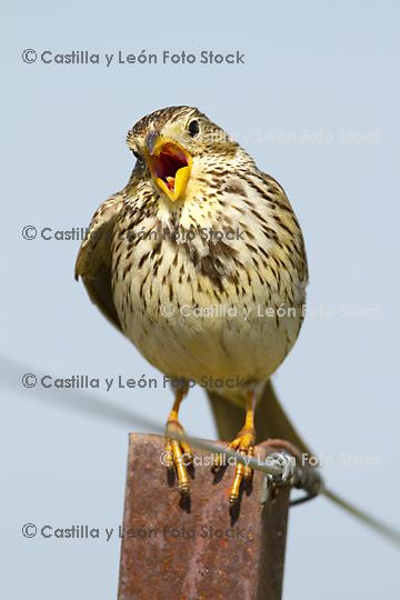 Referencia: 14983 Descripción: Triguero (Miliaria calandra) cantando Palabras clave: España Castilla y León naturaleza fauna aves Passeriformes Pájaros |