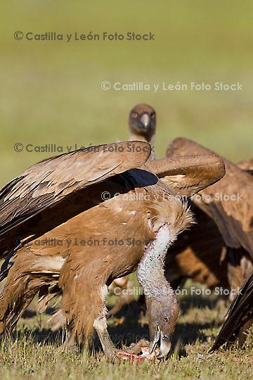 Descripción:  Buitre leonado (Gyps fulvus) alimentándose de una carroña