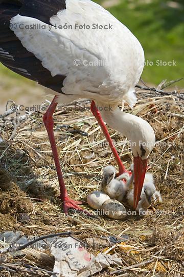 Referencia: 15068 Descripción: Cigüeña blanca (Ciconia ciconia) en su nido cuidando a los pollos y huevos Palabras clave: España Castilla y León naturaleza fauna aves Ciconiiformes |