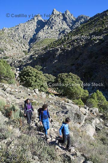 Descripción:  Excursionistas en la Garganta de Tejea, Parque Regional de la Sierra de Gredos, Ávila