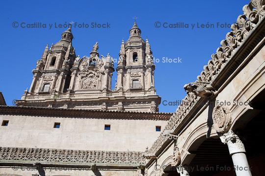 Referencia: 19060 Descripción: Las torres de igleisa de la Clerecía, o del Espiritu Santo, vistas desde el claustro de la Casa de Las Conchas, Salamanca Palabras clave: España Castilla y León ciudad capital Patrimonio cultural Patrimonio de la Humanidad BIC Bien de Interés Cultural Universidad Pontif |