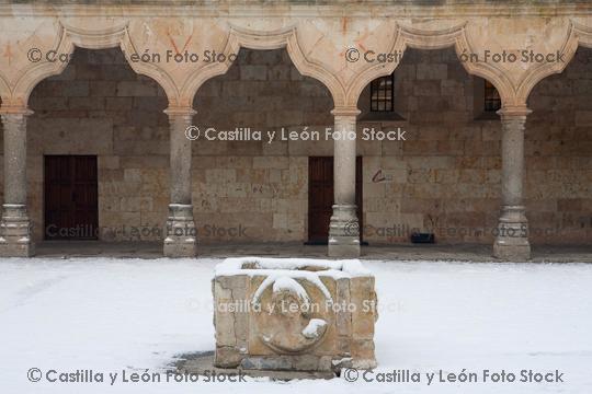 Referencia: 19555 Descripción: Patio de Escuelas Menores de la Universidad de Salamanca Palabras clave: España Castilla y León ciudad capital Patrimonio cultural Patrimonio de la Humanidad BIC Bien de Interés Cultural Gótico Invierno Nieve |