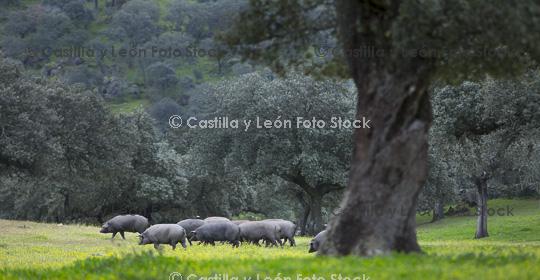 Descripción:  Cerdos en dehesa, Caceres, Extremadura