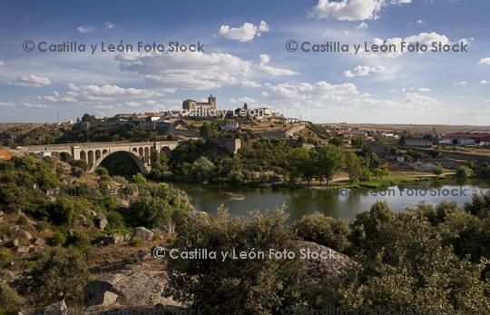 Referencia: 23569 Descripción: Panoramica de Ledesma, Salamana, Castilla y Leon, España Palabras clave: Ledesma Río Tormes azul cielo nubes provincia pueblo puente |